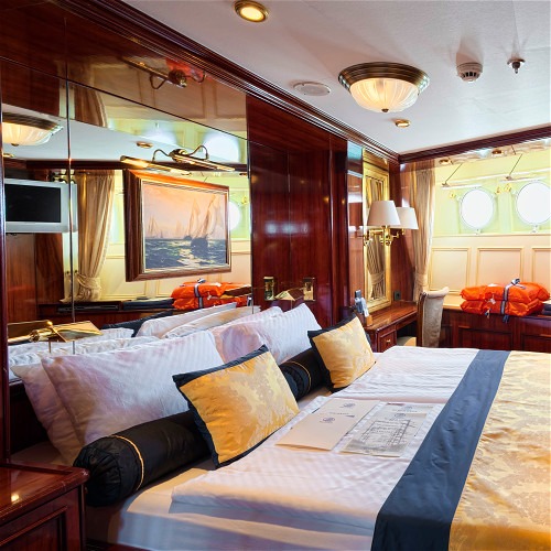 Lits doubles ou séparés, salle de bain en marbre, coffre fort, télévision, tout est installé pour votre plus grand confort lors de cette croisière.