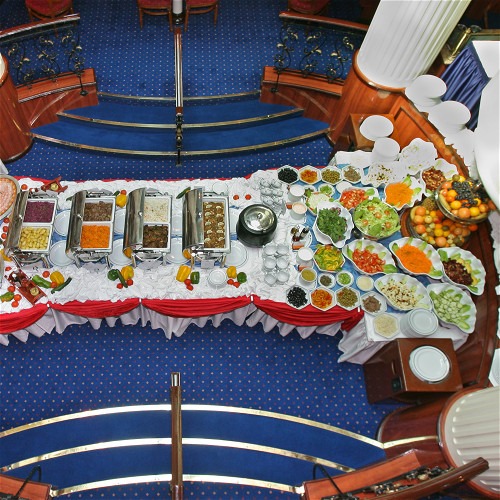 Pour votre petit déjeuner, vous avez le choix. Buffet occidental, viennoiseries ou bacon, saucisses grillées et omelette sur commande, dès votre réveil vos papilles sont comblées. A midi, un buffet avec fruits de mer, salades et de nombreux plats méditerranéens vous sont offerts. Lors de certaines escales vous aurez même la chance de participer à un barbecue sur la plage. Le soir, et toujours dans une ambiance décontractée et élégante, vous dégustez des plats soigneusement préparés par les chefs accompagnés de vins méticuleusement choisis pour vous.