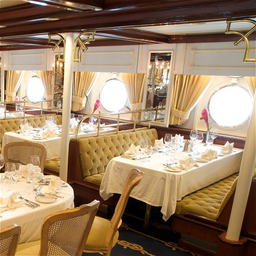 Profitez du bar lounge pour déguster un cocktail après une journée d’excursion à terre. Prolongez la soirée dans la salle à manger pour déguster une cuisine raffinée sans être obligé de respecter un code vestimentaire strict. Après votre dîner, venez danser sous étoiles.