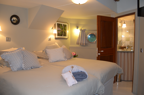 Les cabines ont des hublots en laiton d’origine et des puits de lumière en acajou. Les lits sont équipés de draps de luxe et de salles de bains avec peignoirs et sèche-cheveux. Un ensemble de produits cosmétiques et de crèmes de douche L’Occitane en Provence complète le service hôtelier.